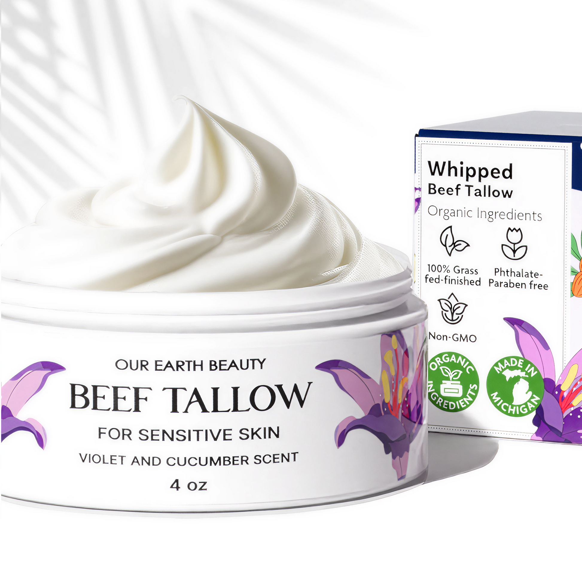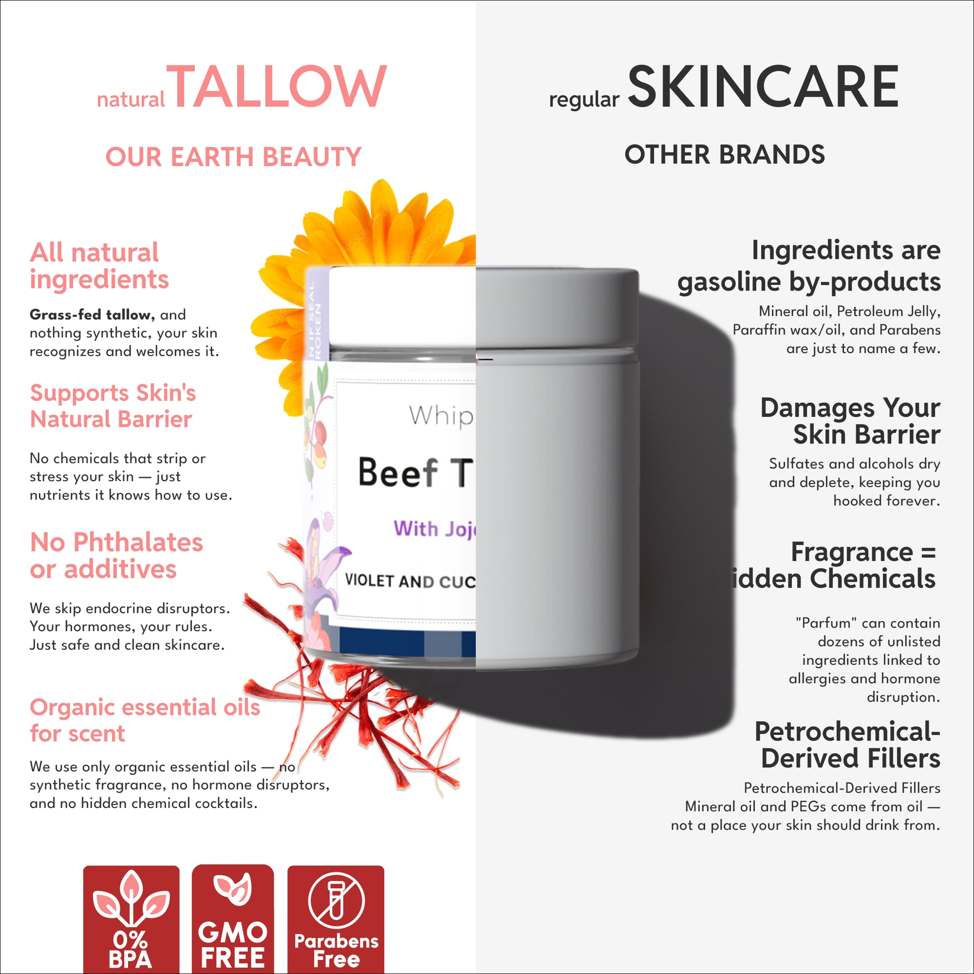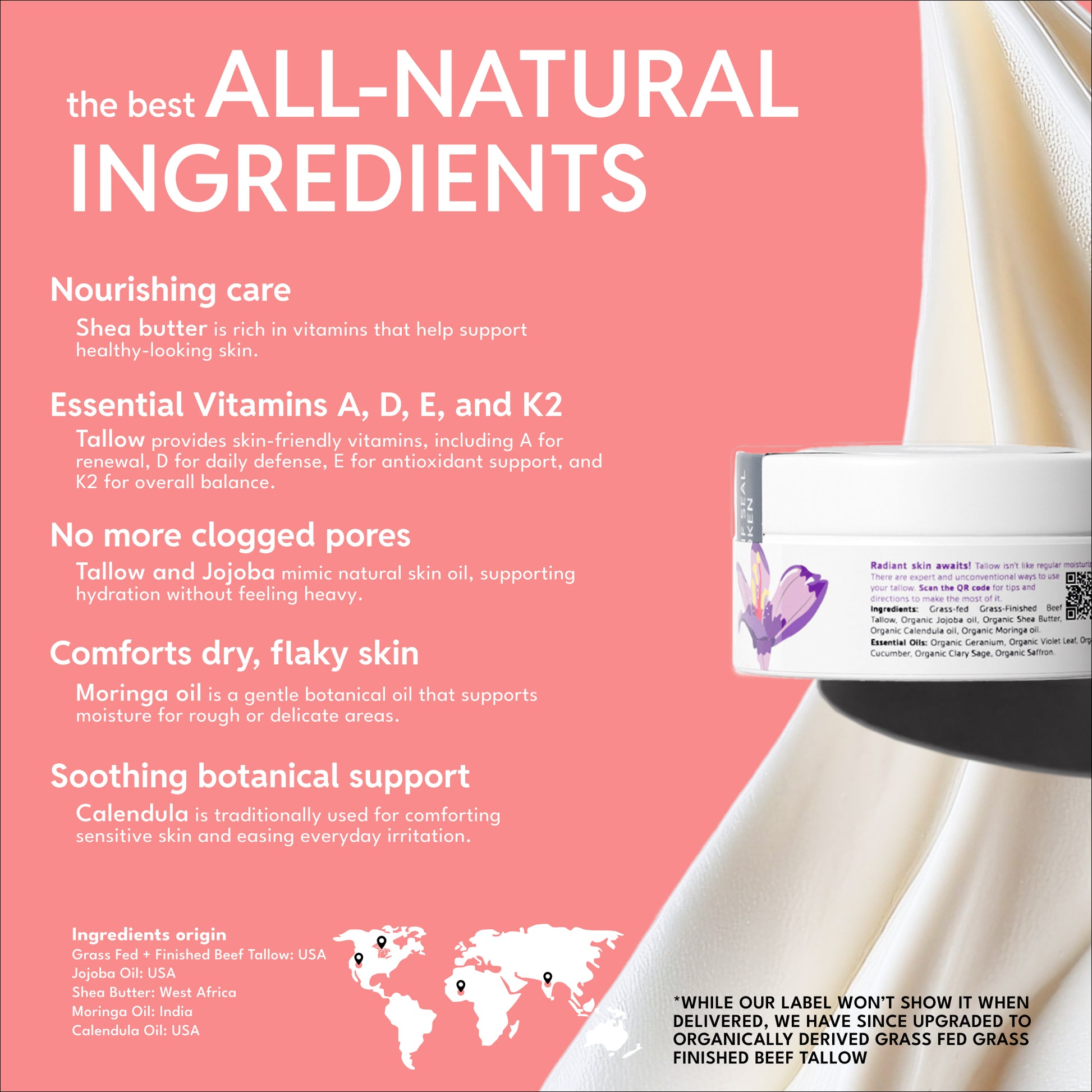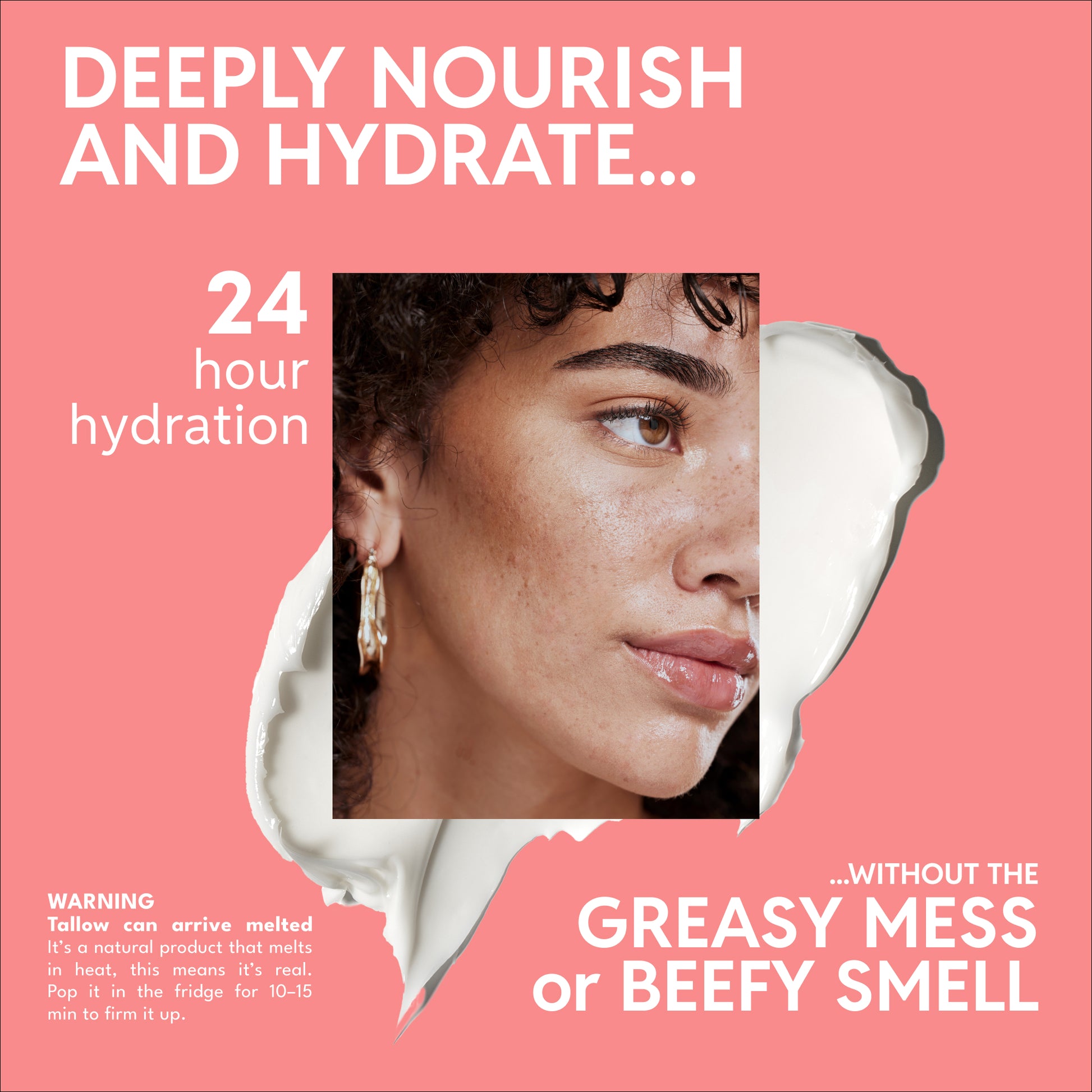Crafted with 100% organic ingredients and grass-fed beef tallow, this balm deeply hydrates and supports your skin’s barrier without synthetic fragrances, parabens, PEGs, or phthalates.