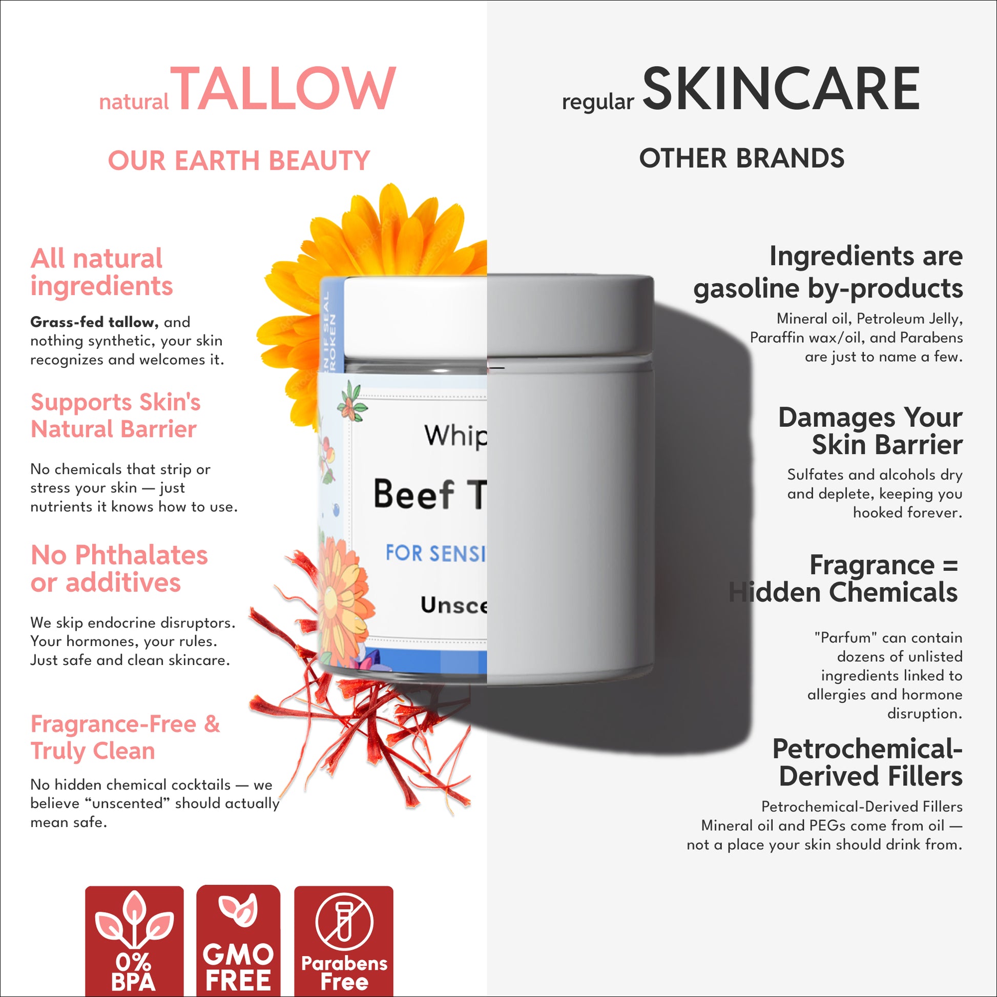 Our Unscented Whipped Tallow Balm is the cleanest moisturizer on the market — made for ultra-sensitive skin and anyone seeking a truly fragrance-free, non-toxic skincare option.